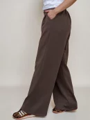 Pantalón ancho marrón con cintura alta, bolsillos laterales y tejido suave con viscosa.
